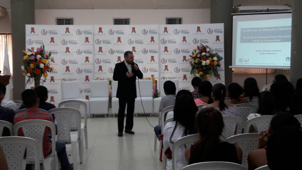éste lo acompañaron, Gladys Bermúdez, abogada y docente de la casa de estudio antes mencionada, linda Ospina docente y Humberto Toro Director de cultura de la prestigiosa casa de estudio colombiana