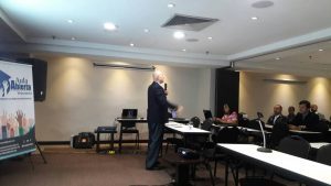 University of Carabobo Professor, Kelvin Zambrano, discussed with the attendees on the «Procedural Incidents and violations of Human Rights of university professors». Zambrano is also a defense lawyer for Santiago Guevara, who was arbitrarily deprived of his liberty for 10 months for writing an opinion article for a newspaper in Spain. At the end of his presentation he was surprised by the university community present with a sample of recognition for Professor Guevara, to whom the university students presented him with a painting honoring him as an academic and as an advocate of academic freedom.