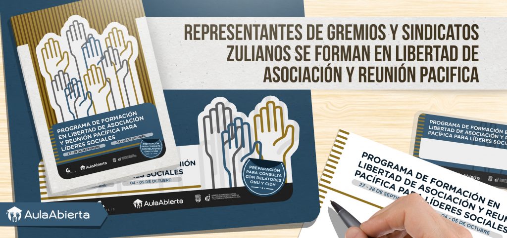 Aula Abierta en conjunto con Civilis Derechos Humanos y la Comisión de Derechos Humanos de la Facultad de Ciencias Jurídicas y Políticas de la Universidad del Zulia, han organizado talleres que formarán a líderes sindicales, gremiales y representantes de Organizaciones No Gubernamentales, estudiantiles, profesionales y a otras figuras asociativas con el propósito de nutrirlos en materia de derechos, de libertad de asociación y reunión pacífica.