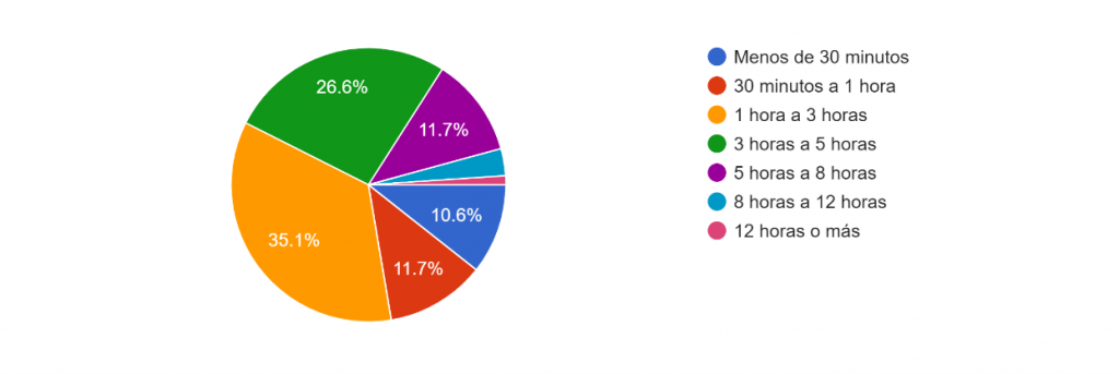 Más del 80% de los estudiantes encuestados indicaron que las fallas del servicio en su residencia son frecuentes. Además, el 61.7% de los estudiantes consideran que los cortes eléctricos afectan negativamente el desempeño de las clases a través de la modalidad a distancia, ya que los rangos de duración de los cortes son entre una a 5 horas al día. Casi una cuarta parte de los consultados (23,4%) pasa entre 5 y 12 horas al día sin electricidad en sus hogares.