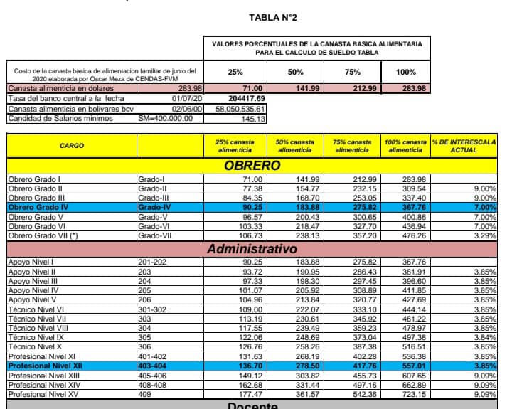 “Arranca en el nivel uno de los obreros y culmina en el nivel nueve, es decir, eso tiene una interescala que se va multiplicando en cada una de ellas. Luego tenemos el sector administrativo que arranca en un nivel uno y culmina en el sector de los profesionales que es un nivel quince”, señaló el Davila, Presidente de FENASIPRUV.
