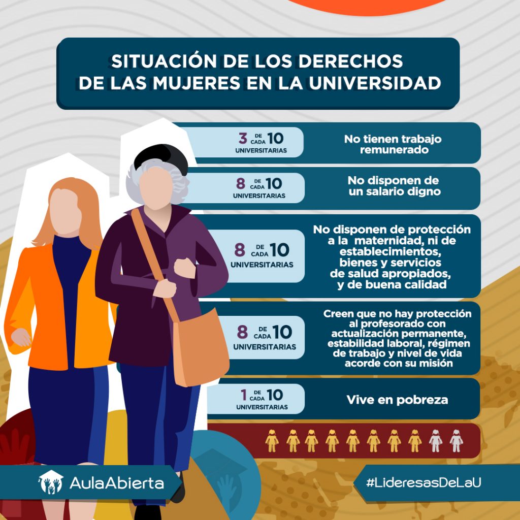 «Nos encontramos con una situación compleja, donde los derechos humanos están siendo vulnerados en la mayoría de los casos. Los resultados arrojan que una cuarta parte de las mujeres no disfrutan de sueldos dignos, sin derecho a tener espacios acordes a una comunidad académica, donde la libertad de expresión y a la manifestación se transgrede. Asimismo, se observa irrespeto a la autonomía y la inviolabilidad de los recintos», refiere las conclusiones expuestas por la organización.