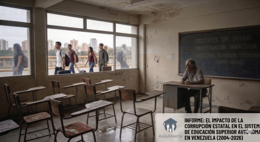 Informe de Aula Abierta alerta que la corrupción estatal ha capturado la educación superior autónoma en Venezuela y ha erosionado derechos humanos entre 2004 y 2026